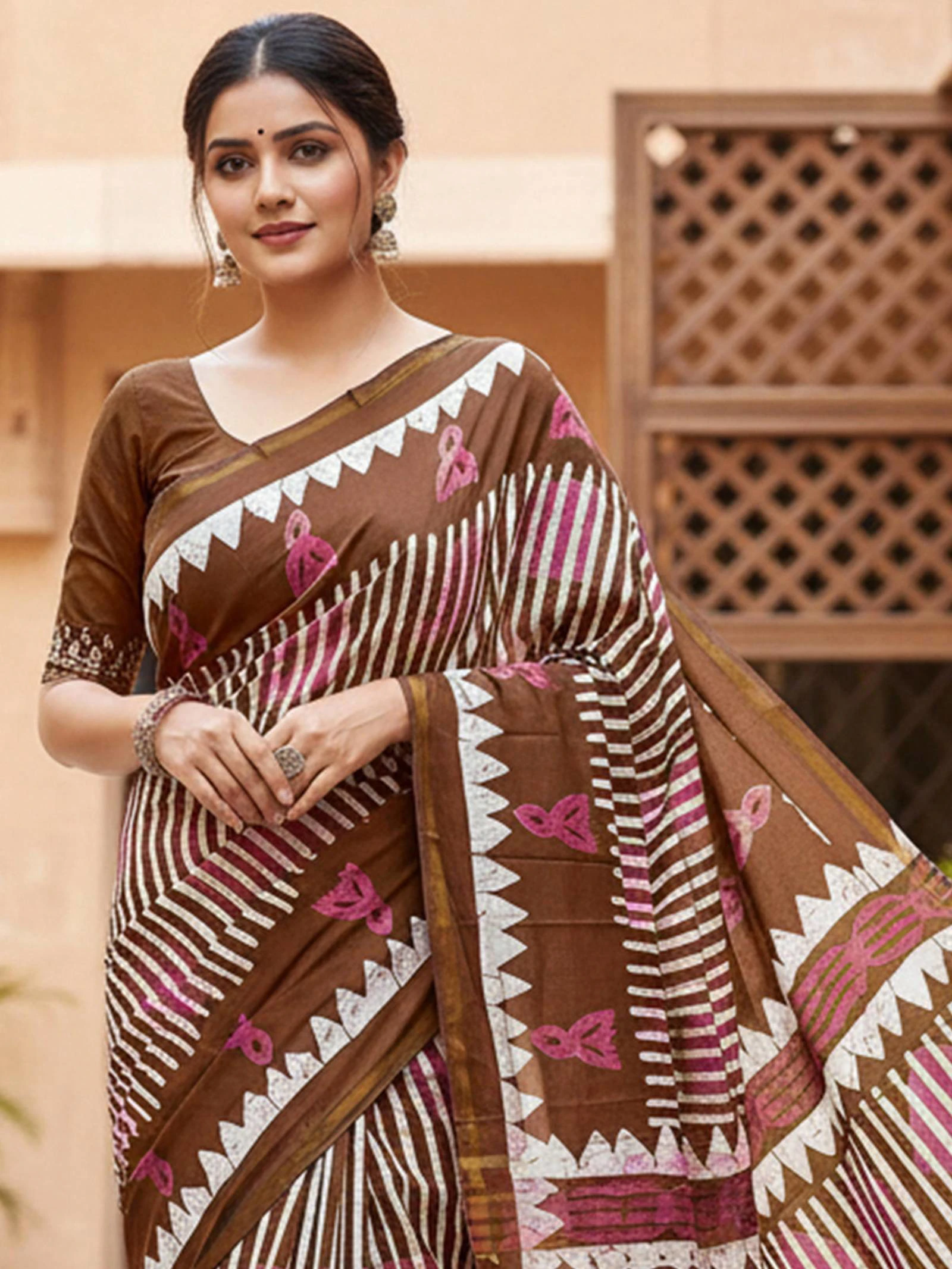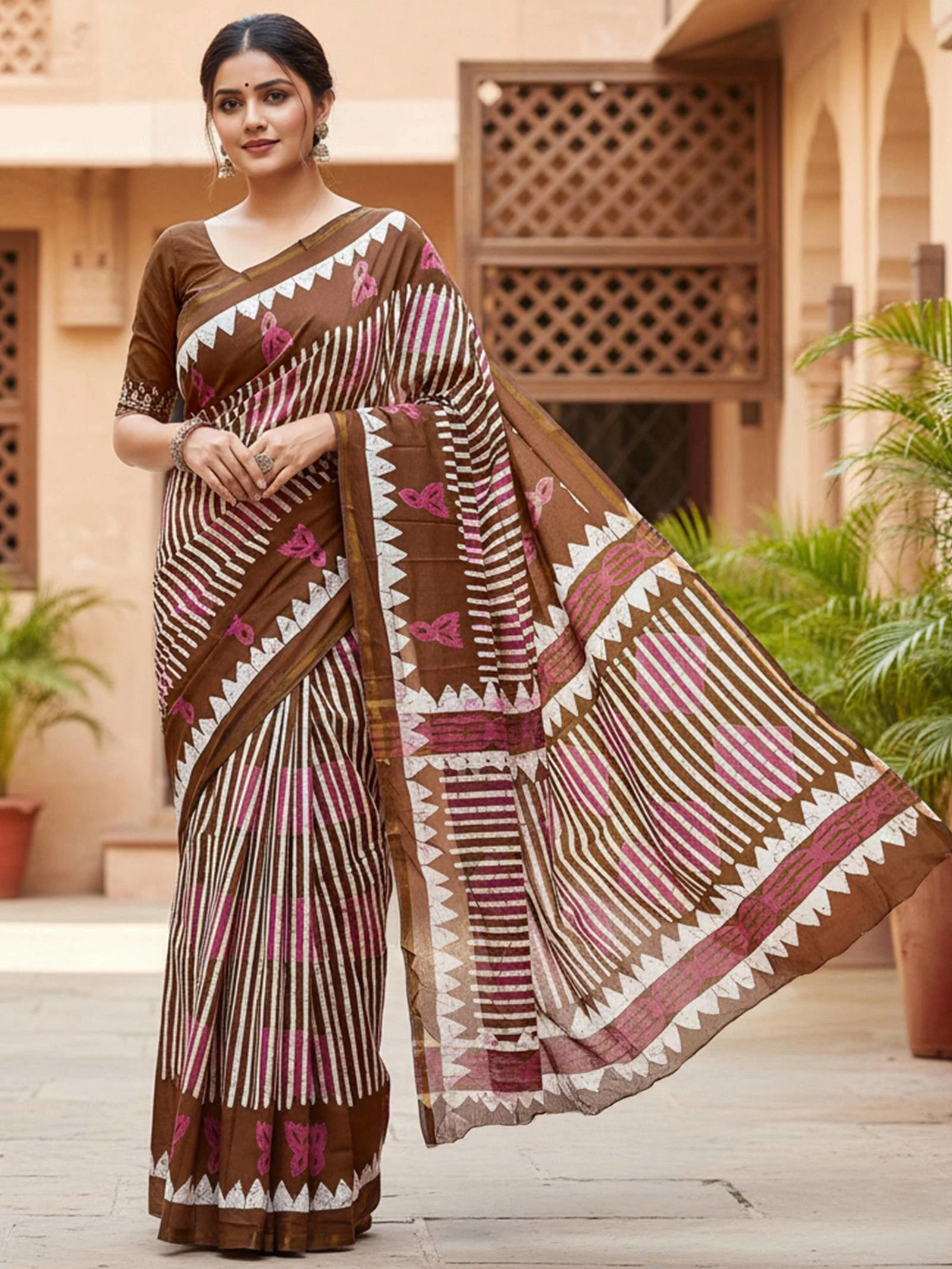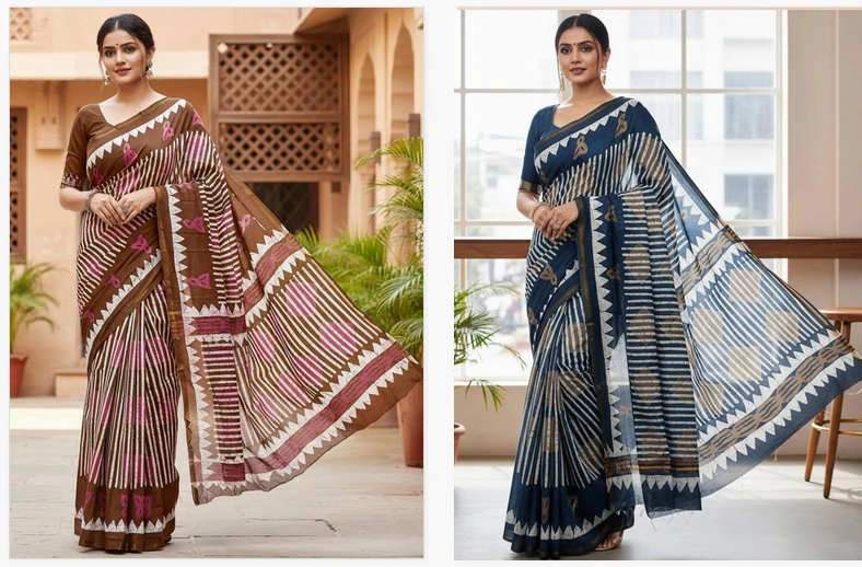 Fabric Modal Cotton Printed Bagru Block Woven Zari Border