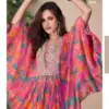 | Details | Premium Real Chinon Silk ( Embroidered Top With Hand Embellished Work Poncho Style With Plazzo ) |