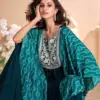 Details Premium Real Chinnon Silk (Full Heavy Look Hand Moti Embroidered Chinnon Silk Gown with Digital Sleeves)
