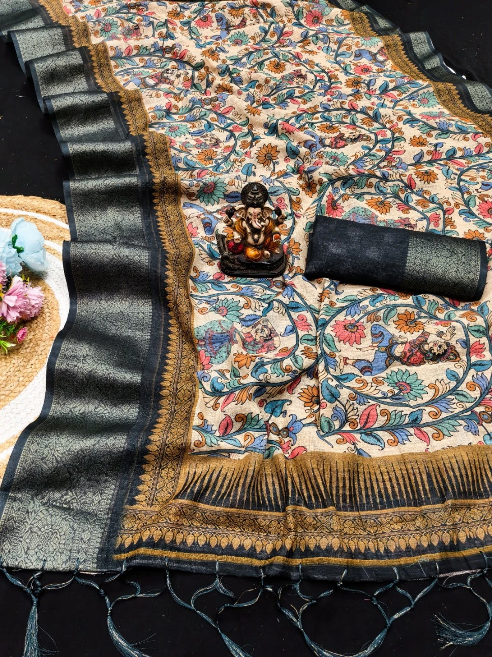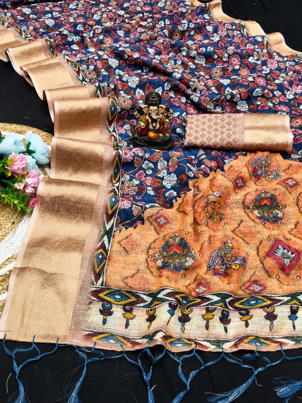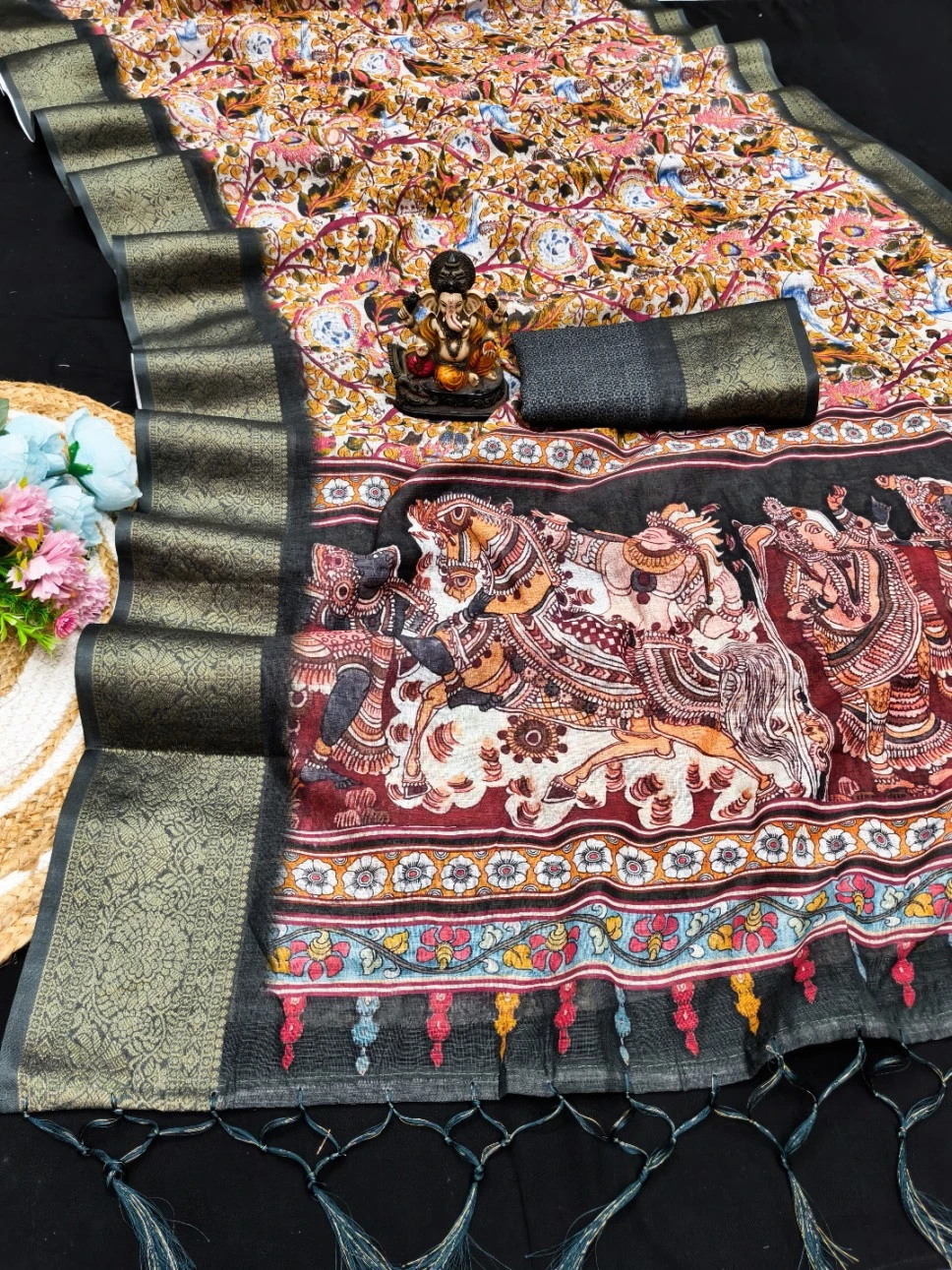 Work Kalamkari Digital Print with Jari Weaving Border