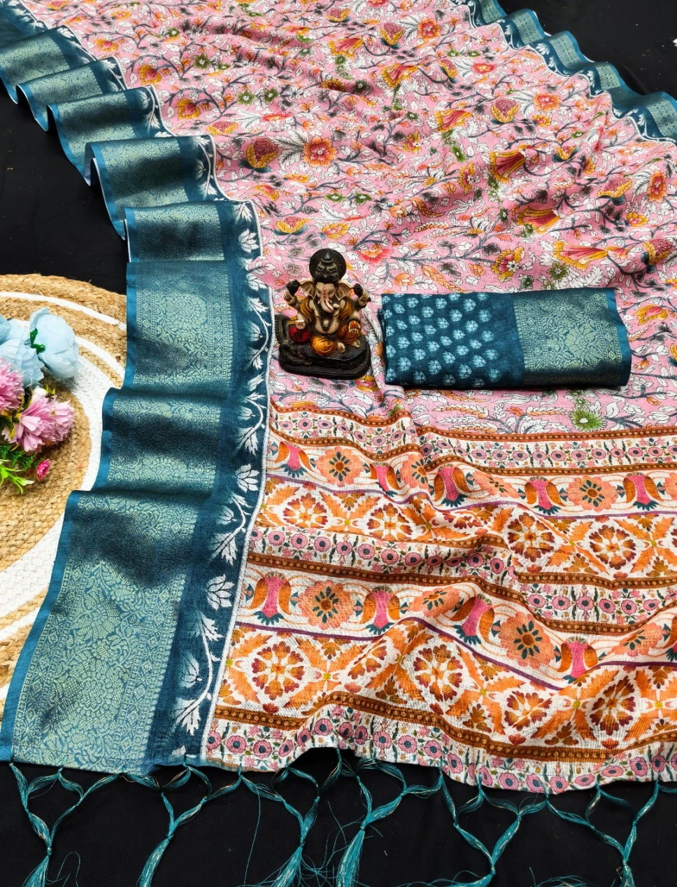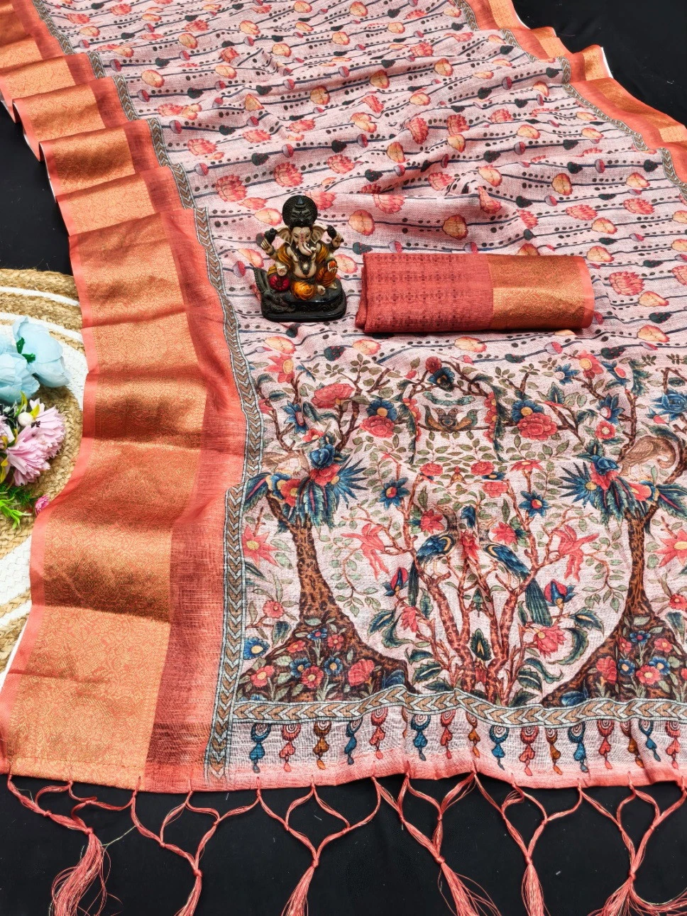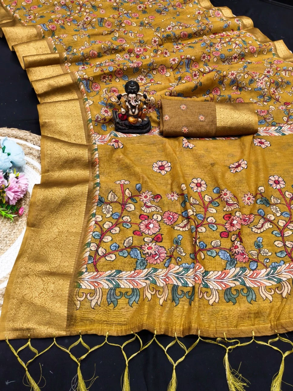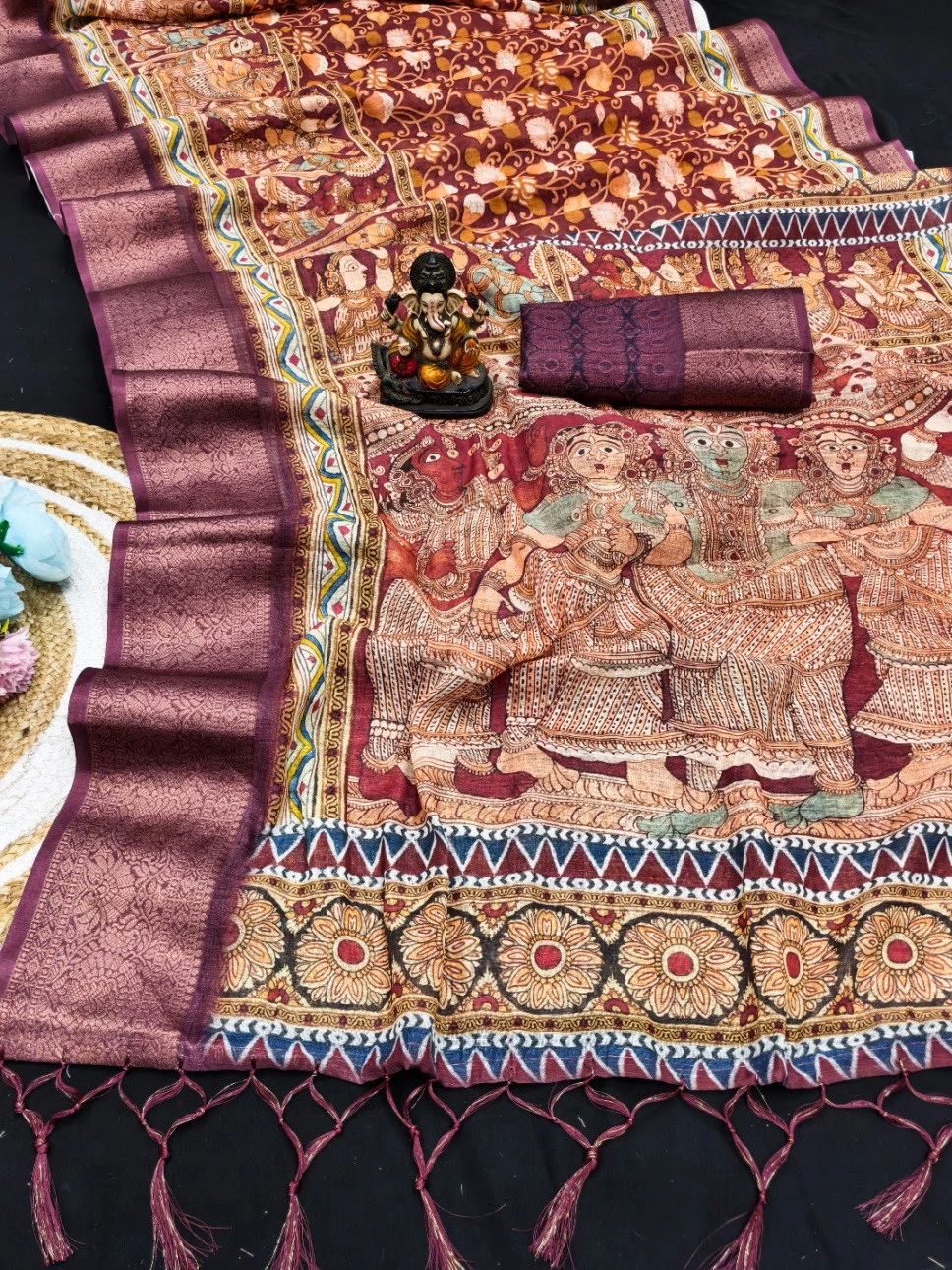 Work Kalamkari Digital Print with Jari Weaving Border