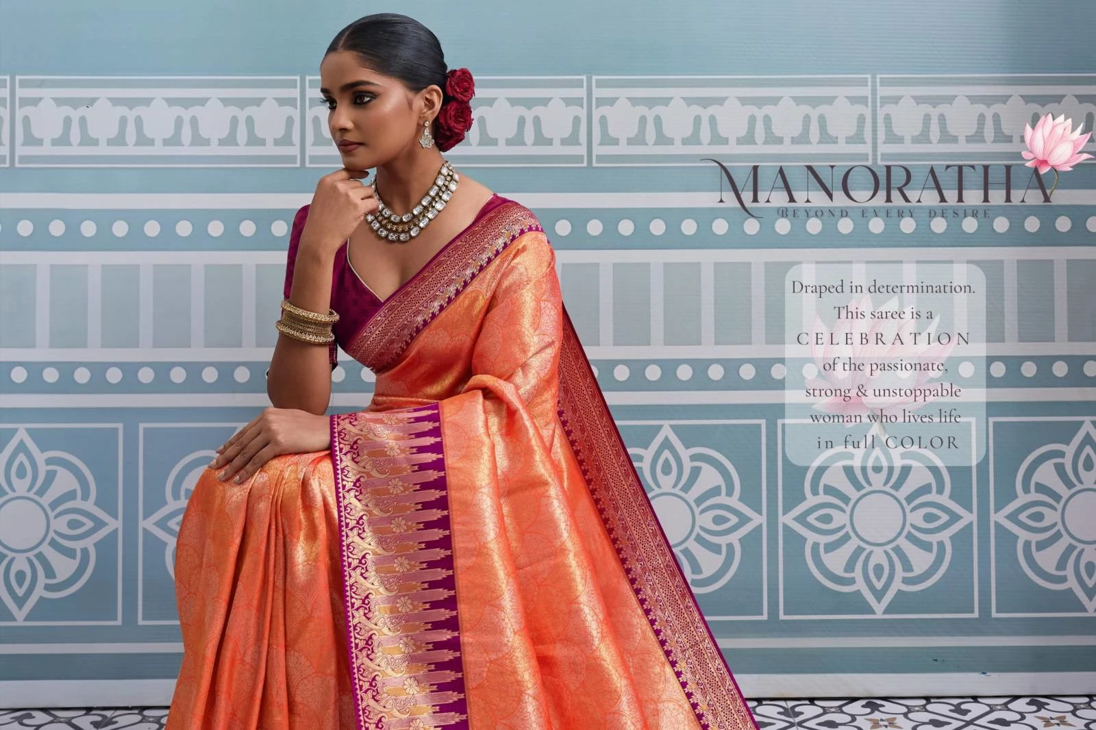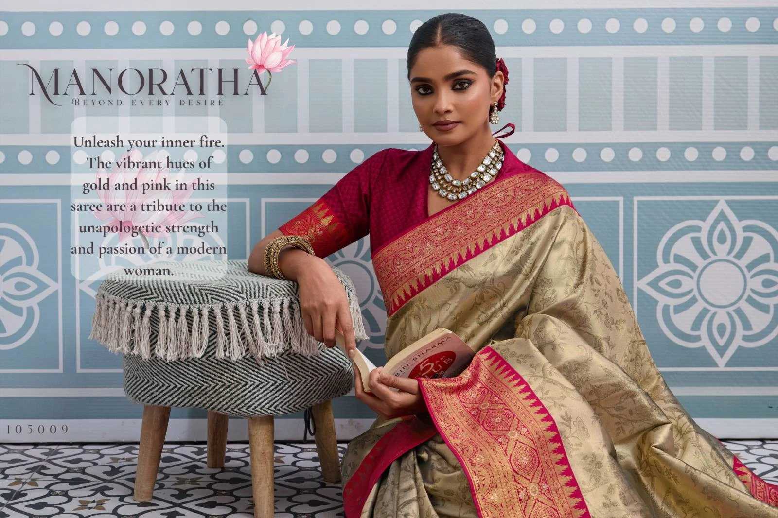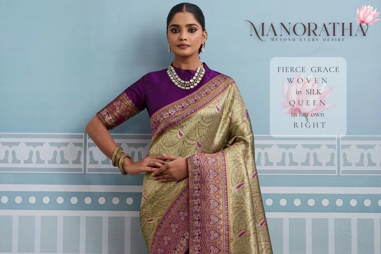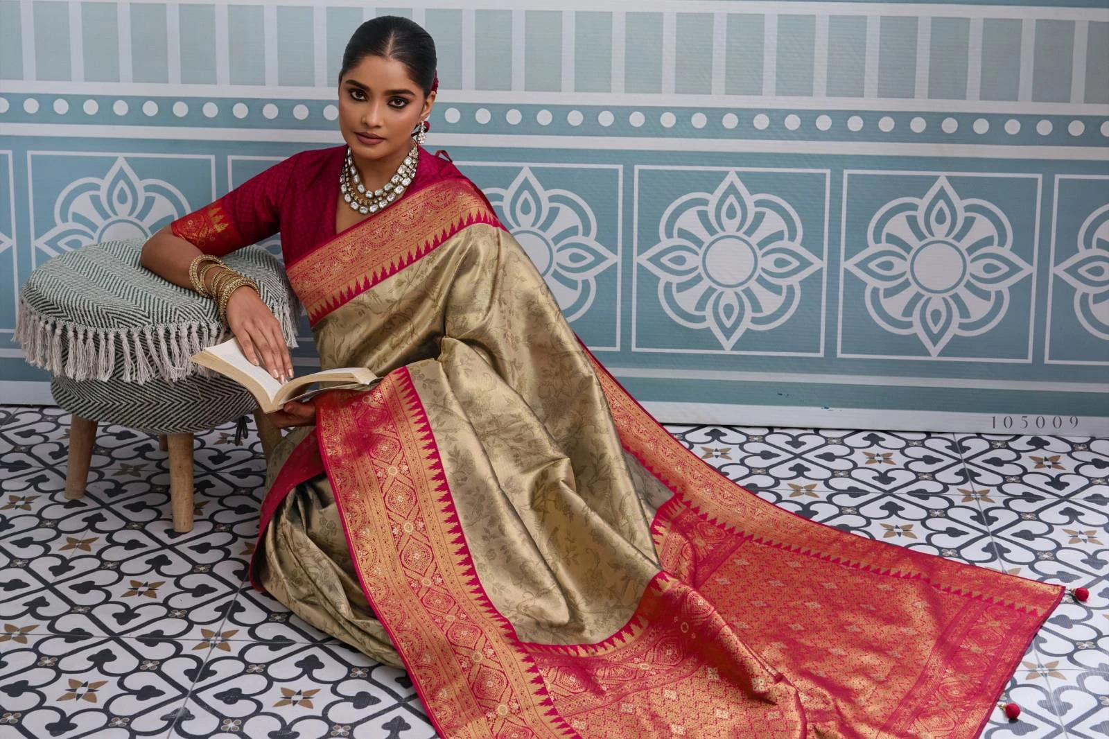 Blouse – Self Woven Running Blouse with Meenakari Pattu for Sleeves