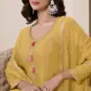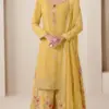 Details Embroidered Chinnon Top (Semi Stitched), Embroidered Chinnon Dupatta, Digital Printed Chinnon Bottom (Stitched) with Heavy Embroidered Sharara